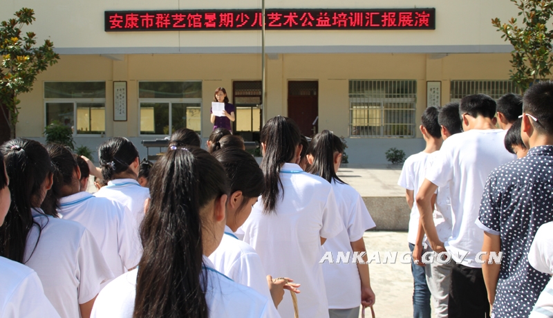7月21日上午,由安康市群众艺术馆举办为期十天的“精准文化扶贫”送公益培训到基层活动结业典礼在旬阳县金寨镇初级中学举行。