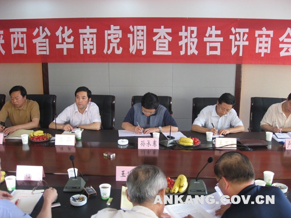 6日下午,省林业厅组织的野生华南虎调查报告评审会上,来自陕西师范大学、西北大学、省野生动物保护协会、省动物研究所等单位的7名专家教授用近乎苛刻的态度,仔细地查看资料文本,听取汇报和介绍,逐一核实了足迹等实物证据。4个小时的调查问讯后,7名专家经过讨论,分别在专家评审意见表上签上了姓名,一致认为:陕西镇坪华南虎调查方案科学合理,调查方法和技术路线科学符合实际,所获资料翔实可靠;对野外获取的足迹及目击证人的访问结果,并结合栖息地环境和食物条件等因素综合分析认定,陕西镇坪县仍有华南虎生存。