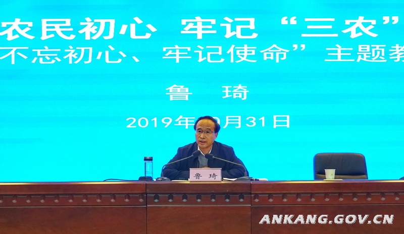 10月31日上午,副市长鲁琦紧扣“不忘初心、牢记使命”主题教育,以“不忘农民初心、牢记‘三农’使命”为题,给分管部门党员干部讲党课。市农业农村局、市水利局、市林业局、市民政局、市富硒办、市供销社、市残联等农口部门党员干部及市政府办部分党员干部参加。
