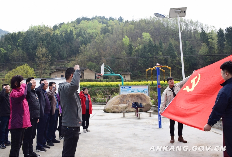 “我志愿加入中国共产党,拥护党的纲领,遵守党的章程……”在大涨河村的村部广场上,全体党员面对鲜红的党旗,高举右拳,再次用铿锵的声音,向党和人民做出了庄严的承诺。