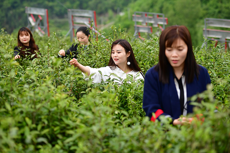 如今,通过在茶园打工、流转土地、回购茶叶等方式,蒋家坪村106户贫困户告别贫困,从茶树上摘下幸福生活。许多像陈敬翠一样常年外出务工的村民也纷纷返乡,分享绿色发展红利。