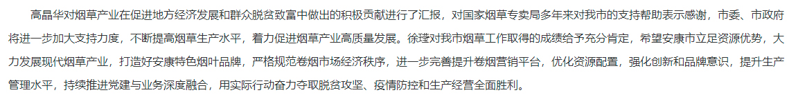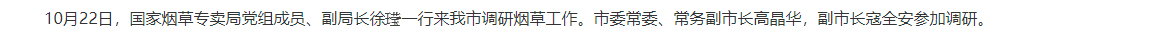 国家烟草专卖局领导来我市调研烟草工作