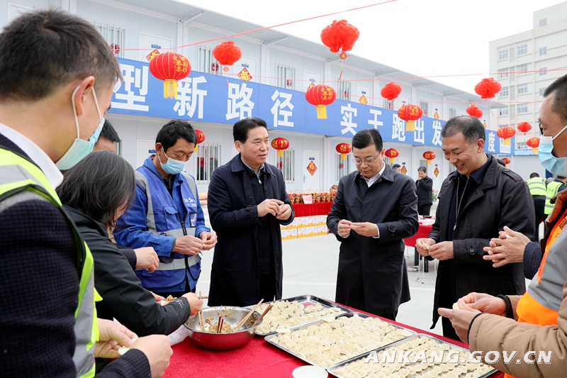 在陕建十二建高新区路网项目工地,赵俊民一行亲切看望响应号召留守安康、就地过年的施工人员,并同大家一起包饺子、吃团年饭,共同分享迎新纳福的喜悦。赵俊民勉励大家,无论来自何方、家在何处,都是推动发展的建设者、参与者、见证者,希望大家在安康舒心过节、安心工作。各级各部门要强化政策落实和保障措施,为就地过年人员提供良好的工作和生活环境,让他们以安康为家,欢欢喜喜地过个幸福年。