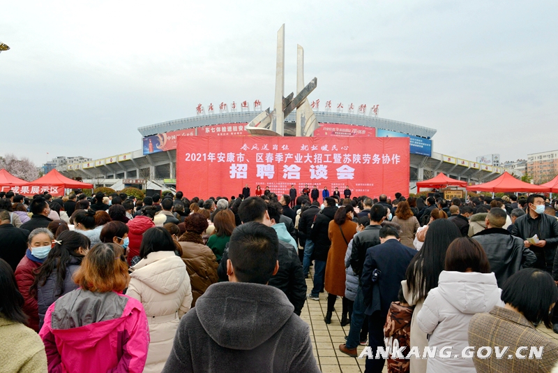为促进农村劳动力等重点群体稳定就业,保障节后企业正常复工复产, 2月25日上午, “春风送岗位﹒就业暖民心”2021年安康市、汉滨区春季产业大招工暨苏陕劳务协作招聘洽谈会在金州广场举办。市委常委、常务副市长高晶华出席活动并讲话。