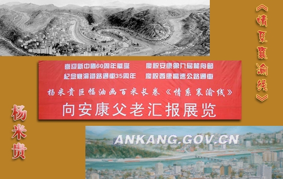 陕西画家杨米贵上世纪70年代奔赴襄渝(襄樊至重庆)铁路建设工地,参与铁路建设直至1973年襄渝铁路全线贯通。从1998年起,杨米贵经过近10年的准备和创作,累计行程2000公里以上,拍下了襄渝铁路所有的洞口、桥梁照片,并完成了大量的写生稿,创作出一幅宽1.6米、长128米的《情系襄渝线》全景油画,讴歌了改革开放30年来襄渝铁路沿线的巨大变化和人文景观。