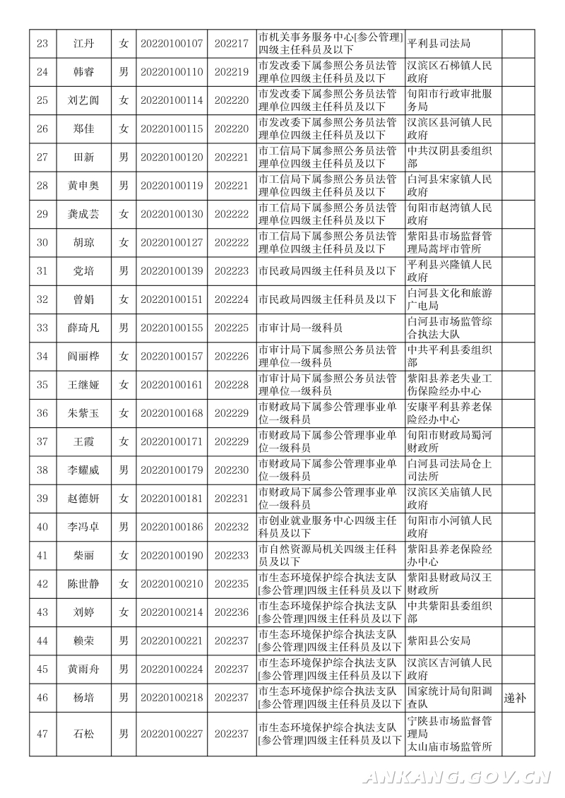安康市市级机关2022年公开选调公开遴选公务员拟任用人员公示