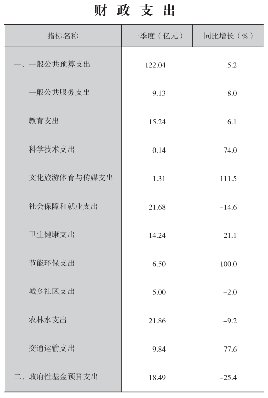 2023年一季度财政支出