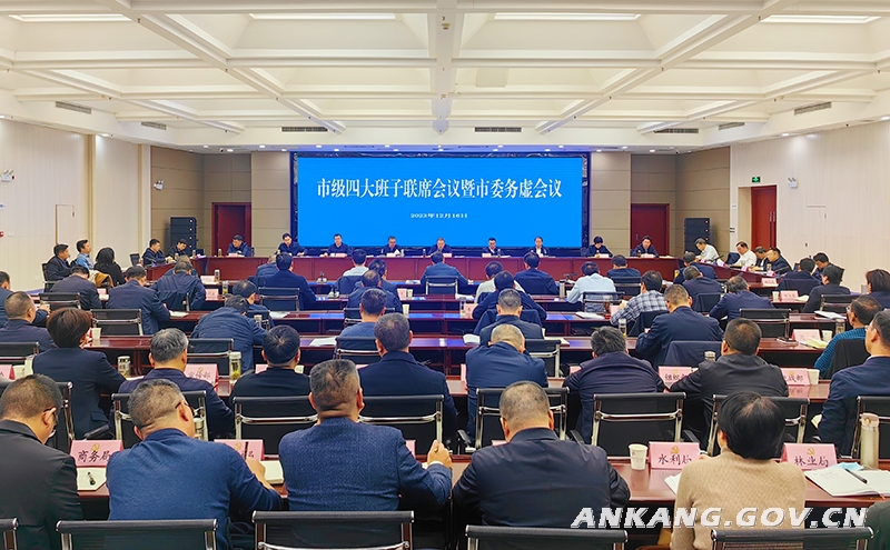 12月16日,市级四大班子联席会议暨市委务虚会议召开。市委书记武文罡主持会议并讲话。市人大常委会主任王彪,市长王浩,市政协主席周建功出席会议并讲话。市委常委,市人大常委会副主任,市政府副市长,市政协副主席,市检察院检察长,安康职业技术学院院长出席会议。