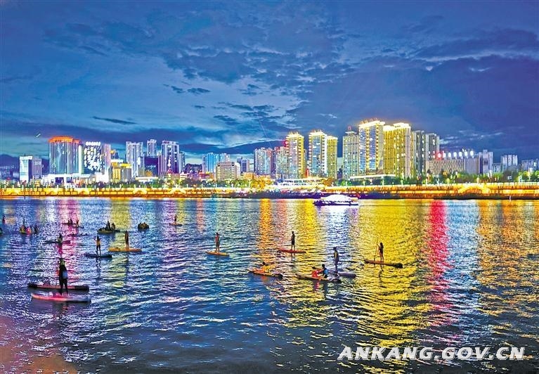 城水相融,人水相亲。今年以来,安康市对汉江两岸的防洪堤和江滩进行全面升级改造,围绕一江两岸打造开放共享的城市会客厅。随着汉江水生态保护与水环境污染治理持续推进,滨湖游购、水上运动等业态频频“上新”,河畅、水清、岸绿、景美的生态红利惠及更多群众。