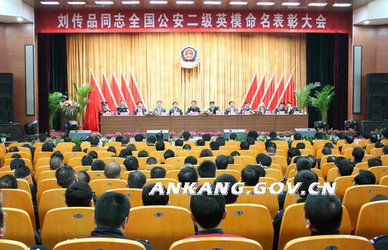 4月9号上午,省公安厅和市委、市政府联合在市群艺馆召开刘传品同志“全国公安二级英模”命名表彰大会。市上领导刘建明、方玮峰、崔光华、陈勇、鲍永能、薛建兴等出席表彰大会,副市长薛建兴主持会议,省公安厅党委副书记、副厅长雷鸣放为刘传品同志颁发了“全国公安系统二级英雄模范”奖章、证书和奖金,省公安厅党委委员、政治部主任向书茂宣读了《公安部关于授予刘传品同志全国公安系统二级英雄模范荣誉称号》的命令。