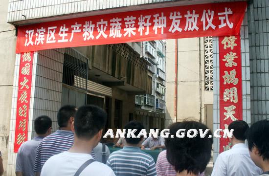 为尽快帮助菜农恢复蔬菜生产,保障城区蔬菜市场供给,推动汉滨蔬菜产业稳步向前发展,区政府在财力十分紧张的情况下,积极筹集30余万元资金,紧急调运9000亩的速生蔬菜种子。7月29日上午,在区蔬菜技术推广中心举行了生产救灾蔬菜籽种发放仪式,免费将这批蔬菜籽种发放到新城、建民、张滩、县河、吉河、五里、恒口、河西、梅子铺、江北办、大竹园等11个受灾严重的乡镇办。副区长李森文在动员讲话中要求各乡镇办务必要尽快将籽种发放到菜农手中,组织菜抓住有利时机农迅速抢种,最大限度的弥补灾害损失,最大限度的保障广大市民和灾区群众的菜篮子。
