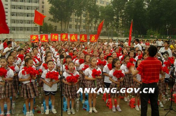 5月20日下午,“永远跟党走”——陕西省青少年庆祝中国共产党建党90周年青春歌会安康演出活动在安康学院体育场隆重举行。团省委宣传部部长王浩澍、市委宣传部副部长李康林、市委党研室主任梁昌润、汉中团市委副书记徐红菊、安康学院团委书记鲁延安及安康团市委领导出席了演出活动,来自城区的十个市直团组织3000余名团员青年参加了演出活动。