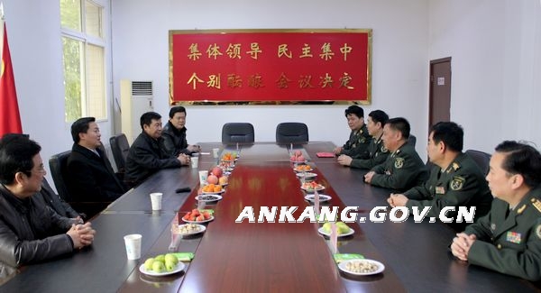 1月17日上午,市委书记、军分区党委第一书记方玮峰,市委副书记、代市长郭青来到安康军分区,亲切看望慰问了广大官兵,向他们表达党委、政府的亲切关怀,并致以新春佳节良好的祝愿。