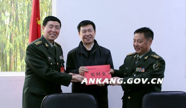 方玮峰在慰问中指出,过去一年,在省委、省政府的坚强领导下,我们坚持以循环发展、富民强市为主题,依靠全市人民的团结奋斗,圆满完成了全年各项发展任务,实现了“十二五”良好开局。一年来,广大驻安解放军、武警官兵在军民共建、抢险救灾、和谐稳定、推动发展等方面做了大量富有成效的工作,为安康经济社会发展作出了积极贡献。在新的一年里,安康面临难得的发展机遇,我们将认真贯彻落实市第三次党代会精神,开拓创新,真抓实干,奋力推动美好安康建设。希望广大官兵继续保持和发扬人民军队的光荣传统,认真履行军队职责义务,积极参与地方经济社会建设,共同为建设美好安康而努力奋斗。