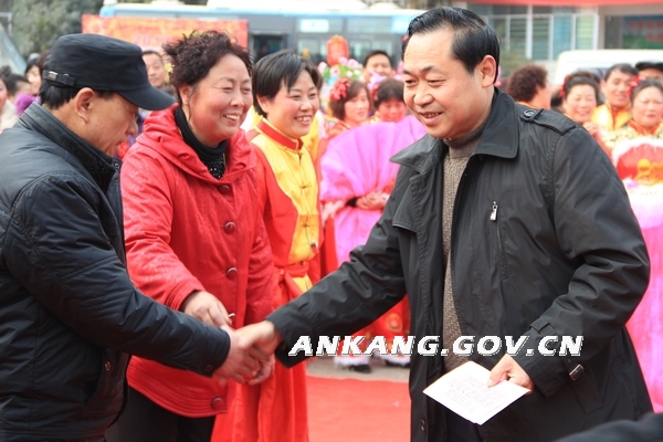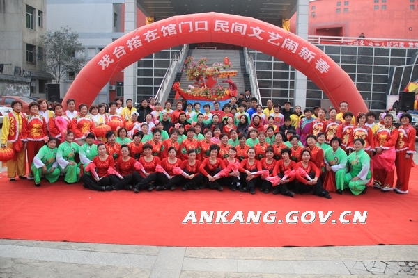 辞兔迎龙龙欢腾,送冬接春春喜庆。为营造城区喜庆的节日气氛,丰富社区居民群众春节期间的文化生活,从农历正月初八至正月十五每天午间,位于鼓楼大街市群艺馆院内锣鼓喧天、热闹非凡。由市群艺馆举办的2012年第四届 “民间文艺闹新春”民间文艺及汉调二黄展演活动在这里举行,好一派浓郁的节日气氛!铿锵的鼓点,欢快的节奏,人们身着节日盛装,幸福的喜悦写在了脸上。把精彩纷呈的民间传统文化和新春的祝福献给人们。 新春文化展演活动将着力突出安康风情和地方特色,既充分展示安康传统文化深厚的底蕴,又生动反映富有时代气息的新年俗。