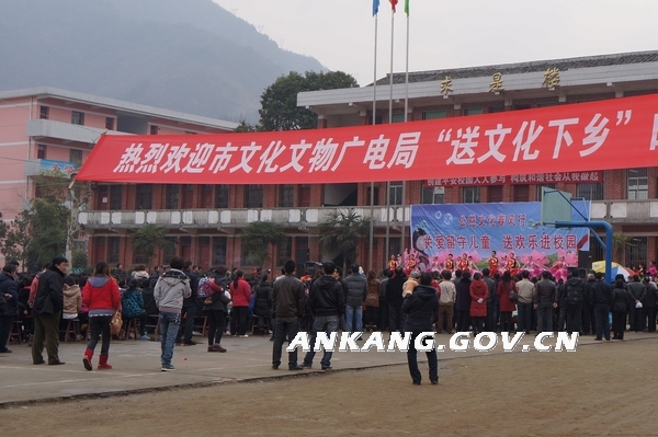 2月17日,由市文化文物广电局主办、市群艺馆、市文化产业发展中心、市图书馆、汉滨区文化馆承办的大型 “公益文化春风行”关爱留守儿童•送欢乐进校园活动在紫阳县蒿坪镇举行。