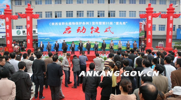 副市长邹顺生为启动仪式致辞,他指出,此次《陕西省野生植物保护条例》宣传活动暨第31届“爱鸟周”活动启动仪式在安康举行,既是对安康野生动植物保护工作的肯定和支持,同时也是一次野生动植物保护科普知识与法律法规的集中宣传普及。安康将以此次活动为契机,大力宣传野生动植物保护法律法规,积极弘扬爱鸟护鸟的传统美德,加强社会公众生态道德教育,切实引导全社会关注野生动植物保护,关注维护人类良好生存环境,号召广大干部群众从自我做起,积极参与到保护动植物、关爱鸟类的行动中来,真正使《陕西省野生植物保护条例》宣传和“爱鸟周”活动深入开展,取得实效,为建设山清水秀、鸟语花香、生态文明、社会和谐的美好安康作出新的贡献。