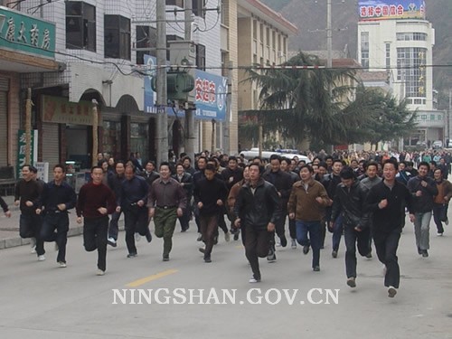 风雨送春归,飞雪迎春到!元月5日上午,宁陕县委宣传部、县总工会、县国土资源局、教育体育局、县交警大队联合举办了城区职工越野赛,各机关单位、城区居民共1000余人参加了比赛。县委常委、宣传部长齐致祥主持越野赛开幕仪式,副县长周永鑫做重要讲话,县人大常委会副主任陈迪生、副县长张海庆、县政协副主席刘家华、县总工会主席吴大芒出席了开幕式。