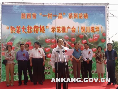 5月17日,旬阳人劳局派员会同安康市人事局组团奔赴铜川市新区陈坪村,参加了由省人事厅、省外专局、省农业厅、铜川市政府主办的“欧美大粒樱桃”示范推广会,这是我省“一村一品”系列活动正式启动仪式。省委副书记杨永茂、省委组织部副部长、人事厅厅长王绪刚、省农业厅厅长梁风明、省外专局局长候路明等领导出席了示范推广会并讲话。各市外专局(引智办)、农业局、果业局领导、各地客商、重点果业专业户、铜川各区县、各部门、单位负责人和当地群众千余人参加了推广会。