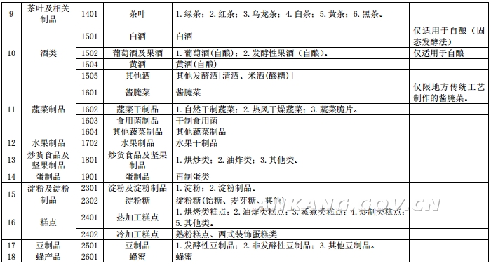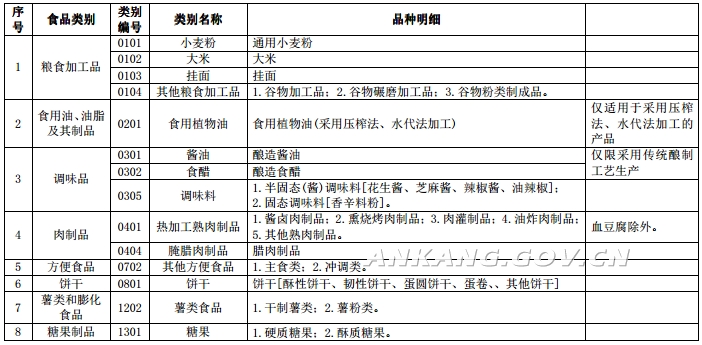 附件:安康市食品生产加工小作坊允许生产加工的食品目录
