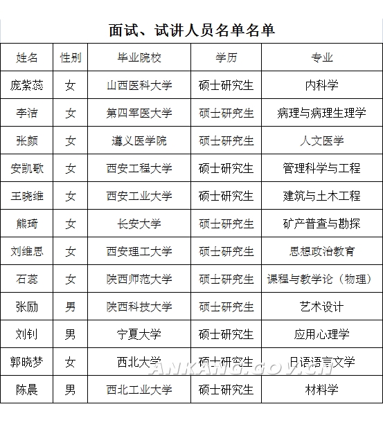 按照《陕西省事业单位公开招聘工作人员面试工作规则》和《安康职业技术学院2016年高层次人才招聘工作安排》,现就面试工作有关事项公告如下: