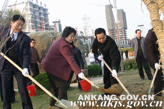 视察安康市中心城市建设,亲手种植了一棵桂花树、一颗白玉兰,表达了对安康人民的良好祝愿。(安康市建设局提供)